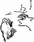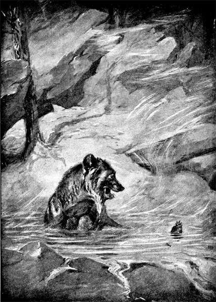 Ants are sour food and made the Bears thirsty, so the old one led down to the river. After they had drunk as much as they wanted, and dabbled their feet, they walked down the bank to a pool, where the old one's keen eye caught sight of a number of Buffalo-fish basking on the bottom. The water was very low, mere pebbly rapids between these deep holes, so Mammy said to the little ones: