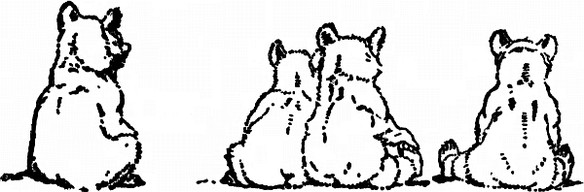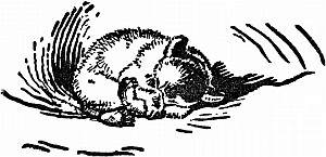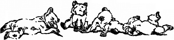 They had eaten so much now, and the sun was so hot, that all were quite sleepy. So the Mother-bear led them to a quiet little nook, and as soon as she lay down, though they were puffing with heat, they all snuggled around her and went to sleep, with their little brown paws curled in, and their little black noses tucked into their wool as though it were a very cold day.