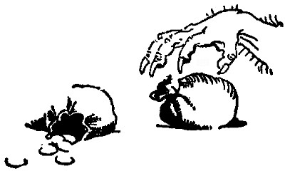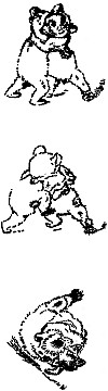 She knocked off the top of the hill, then laid her great paw flat on it for a few moments, and as the angry ants swarmed on to it she licked them up with one lick, and got a good rich mouthful to crunch without a grain of sand or a cactus-stinger in it. The cubs soon learned. Each put up both his little brown paws, so that there was a ring of paws all around the ant-hill, and there they sat, like children playing "hands," and each licked first the right and then the left paw, or one cuffed his brother's ears for licking a paw that was not his own, till the ant-hill was cleared out and they were ready for a change.