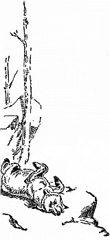 Bang! and she fell paralyzed and dying with a high shoulder shot. And the three little cubs, not knowing what to do, ran back to their Mother.