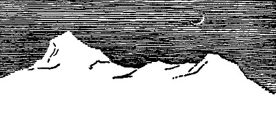 As cold night came down, he missed her more and more again, and he whimpered as he limped along, a miserable, lonely, little, motherless Bear—not lost in the mountains, for he had no home to seek, but so sick and lonely, and with such a pain in his foot and in his stomach a craving for the drink that would nevermore be his. That night he found a hollow log, and crawling in, he tried to dream that his Mother's great, furry arms were around him, and he snuffled himself to sleep.