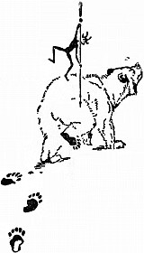 But away up in the woods of Anderson's Peak that night a little lame Grizzly might have been seen wandering, limping along, leaving a bloody spot each time he tried to set down his hind paw; whining and whimpering, "Mother! Mother! Oh, Mother, where are you?" for he was cold and hungry, and had such a pain in his foot. But there was no Mother to come to him, and he dared not go back where he had left her, so he wandered aimlessly about among the pines.