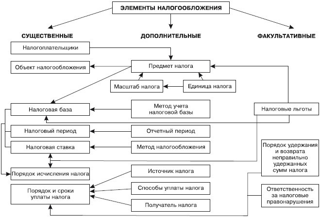 Элементы налогообложения имеют универсальное значение, хотя налоги различны и число их велико. В зависимости от степени значимости и, соответственно, участия того или иного элемента в процедуре установления налога различают существенные, факультативные и дополнительные элементы налогообложения (рис. 3.1).