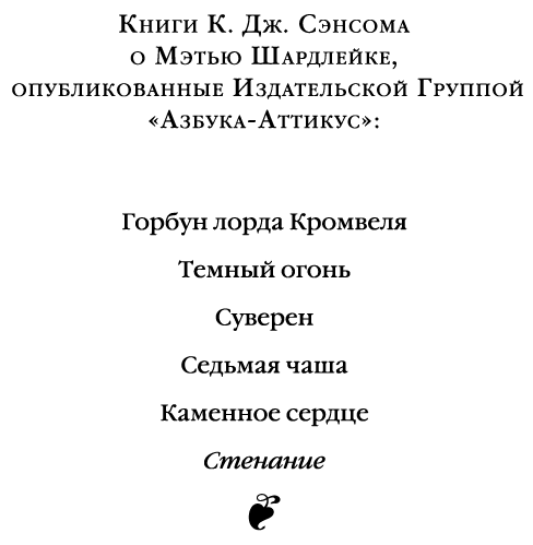 Стенание : роман / К. Дж. Сэнсом ; пер. с англ. М. Кононова. — СПб. : Азбука, Азбука-Аттикус, 2021. — (The Big Book).