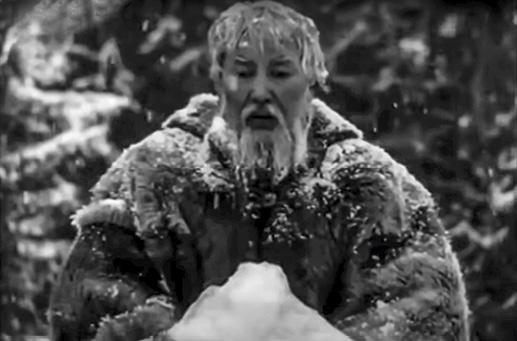 Этот фильм — документальная реконструкция, внутри которой происходит четко организованное действие по «воссозданию» аутентичного национального праздника, но пафосный закадровый голос и отчетливая линейность действия выдают условность происходящего, заранее написанный сценарий и заложенный пропагандистский сюжет. Саха в кадре по-прежнему не субъекты, они объекты приложения политической воли советской власти, которая перемещает их внутри кадра, заставляя имитировать свой естественный быт, озвучивает голосом диктора каждое из действий, добавляя им больше механизированности, чем естественности. Апофеозом этой квазиантропологии становятся кадры камлания шамана1, но его объекты не боги якутского пантеона, а огромный портрет Сталина. «За великого вождя, за отца якутского народа товарища Сталина» выпивается ритуальное молоко кобылицы.