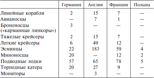 В начале войны положение германских кригсмарине (ВМС) было далеко не блестящим. Британские военно-морские силы превосходили германские по тоннажу в семь раз, французские ВМС были по тому же показателю сильнее кригсмарине в три раза. Польские военно-морские силы уступали германским, но их вообще вряд ли стоило принимать во внимание. К этому следует добавить существенный potential de guerre[6] – в немецком языке нет столь меткого слова – Британской империи. Оно выражает общую способность страны к ведению войны, ее благоприятное или неблагоприятное географическое положение, объем промышленного производства и природные богатства, численность народа этой страны и силу его духа, способность этого народа давать своей стране солдат и организаторов, рабочих и деятелей науки, а также ограниченность или неограниченность стратегического сырья, обеспечение населения и армии продовольствием и многое другое.