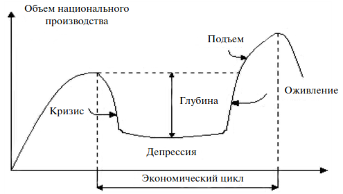 Глубина экономического кризиса измеряется от высшей точки подъема до низшей точки падения производства.