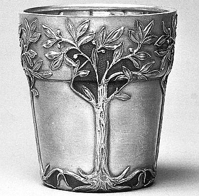 Стакан с листьями лавра. Серебро, штамповка, золочение, эмаль. Фирма «К.Э. Болин». Мастерская К. Линке. Москва. 1900-е гг.