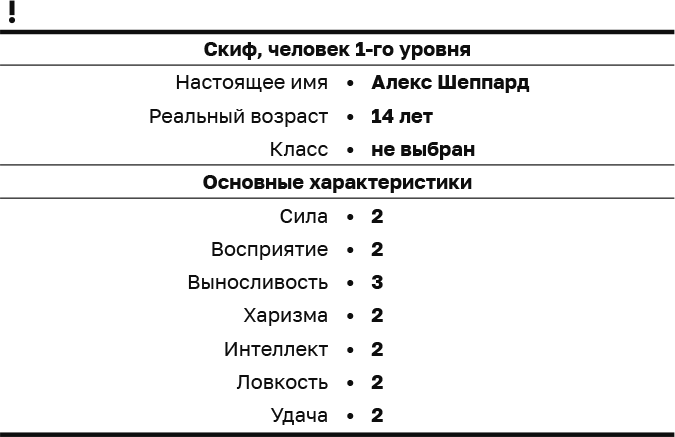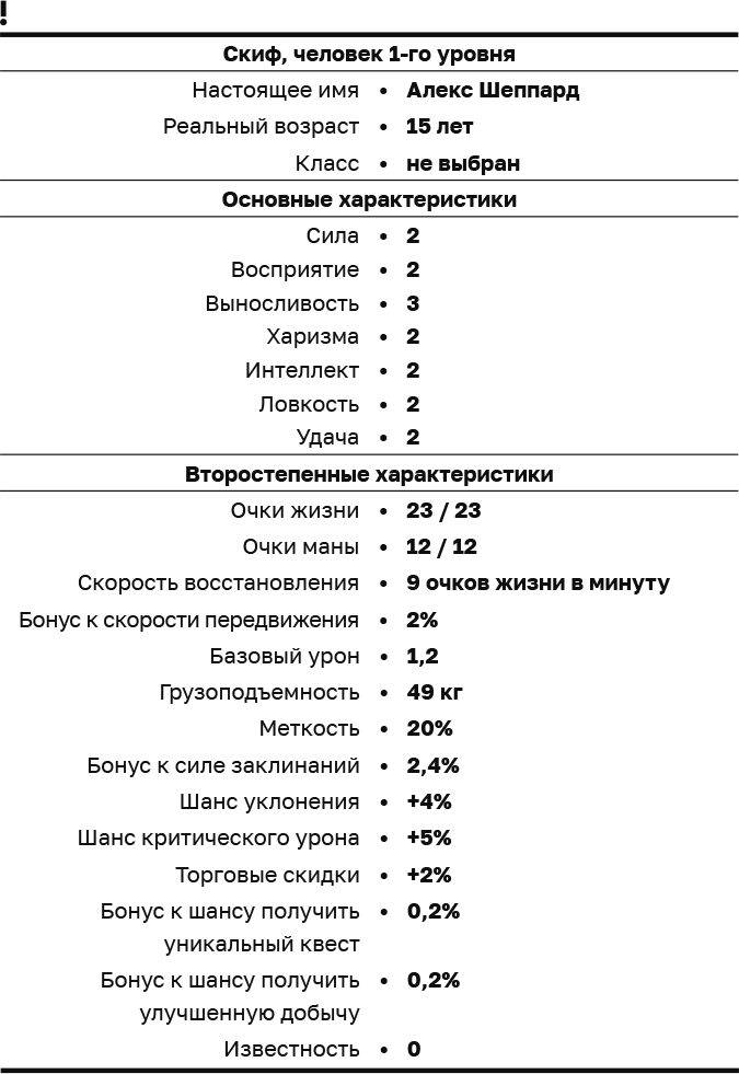 В школе я слышал, что какой бы класс ты ни выбрал, потом все равно надо иметь значение каждого параметра не ниже десяти. Сила — хотя бы для того, чтобы переносить больше груза, ловкость и восприятие — чтобы не мазать по цели и наносить критический урон. Интеллект влияет на объем и регенерацию маны [8], а без нее не используешь ни один специальный прием, даже если ты воин. С низкой харизмой можно забыть о хороших квестах и скидках у торговцев, а удача вообще всего касается.