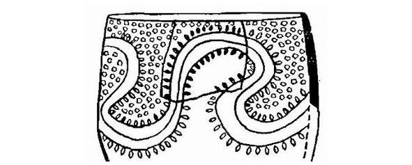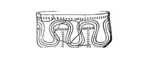 On the ceramics and cult sculpture of the Eneolithic, we find a steadily repeating scheme of the meander pattern, which already somewhat differs from the Upper Paleolithic Mezinian and Neolithic in its great geometrism and clarity of rhythm. This is evidenced by the decoration of ceramic products found in Moldavia in the settlements of Frumushika I, Hebeshesti, Gura Vey. The meander pattern adorns the sides of the Kernosovsky idol found in the Dnieper region: the central phallic image is, as it were, supplemented by side compositions, one of which is represented by a set of zigzag and meander stripes, on the other such zigzag and meander stripes rise above the fertilization scene and the image of a bull with moon-shaped horns under this scene. The whole complex of plots leaves no doubt about their sacred character. A. A. Formozov writes: “Sometimes ancient things have a magnificent pattern covered with areas hidden from the viewer’s eyes — the bottoms of vessels or the reverse side of the plaques sewn onto clothes. From an aesthetic point of view, this is meaningless”. A lot of such senseless from the point of view of aesthetics, but probably playing a huge ritual role of ornaments, we meet precisely on the bo