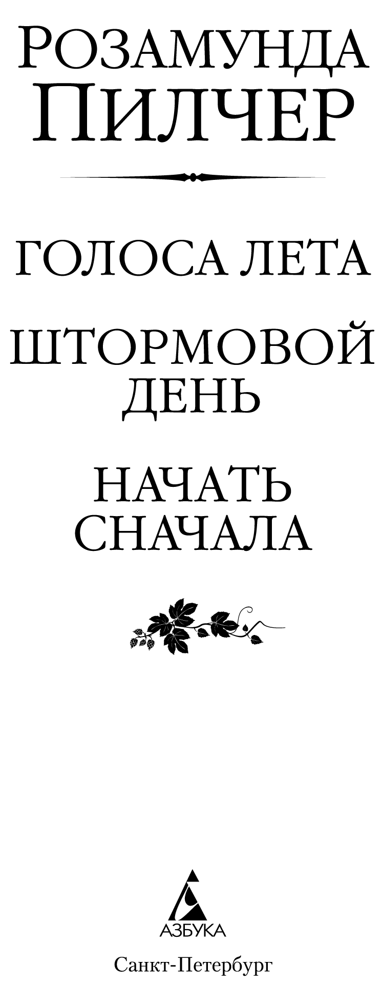 Голоса лета ; Штормовой день ; Начать сначала : романы / Розамунда Пилчер ; пер. с англ. И. Новоселецкой, Е. Осеневой, И. Архангельской. — СПб. : Азбука, Азбука-Аттикус, 2022. — (The Big Book).