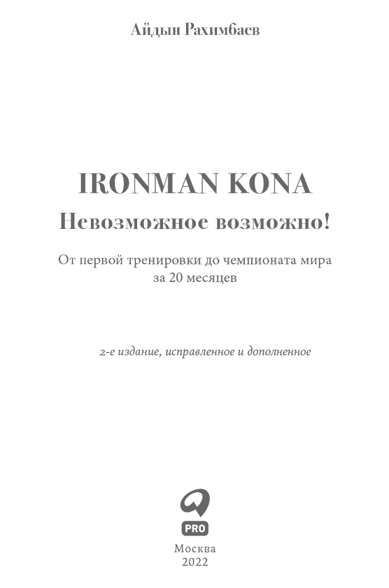 Эта книга обо всех нас. О том, как философия Ironman, сформулированная всего в двух словах — Anything is possible!, — укрепила и дополнила философию BI Group. Помогла вырастить в ней мощную культуру достижений, заразила и преобразила ее сотрудников, среди которых теперь более двухсот марафонцев. О том, как Казахстан стал первой страной на постсоветском пространстве, в которой проходят сертифицированные чемпионаты под брендом Ironman. Еще в середине 2010-х годов это невозможно было себе представить, но Anything is possible! — и вот уже весь мир съехался на Ironman Astana 2018. Еще больше людей приняло участие в Ironman Astana 2019, затем два года простоя из-за пандемии коронавируса — и в нынешнем, 2022 году мы снова принимаем триатлетов на «железную» дистанцию.