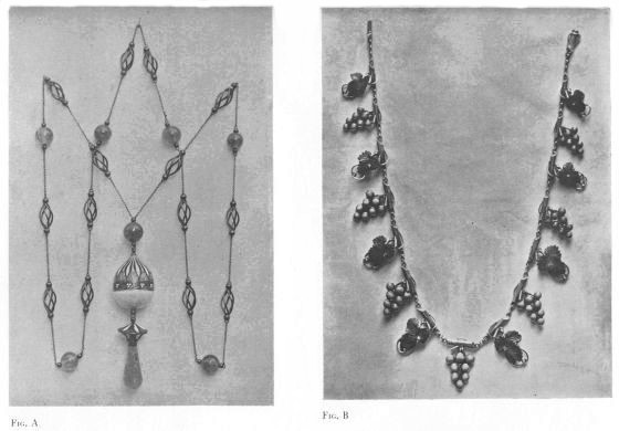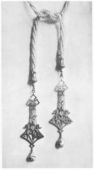 Of course, I do not despise the fine stone, which, by its bold colour, often relieves the work, but this is not altogether the object of the jewel, unless profit be the sole object of the maker; and I ought to add that the revival of the jewel in recent years has not been favourably regarded by certain firms, who saw therein a distinct diminution of gain, the fact being that their large stock of fine stones—beautiful in themselves, but out of place in works such as I have mentioned—threatens to remain on their hands.
