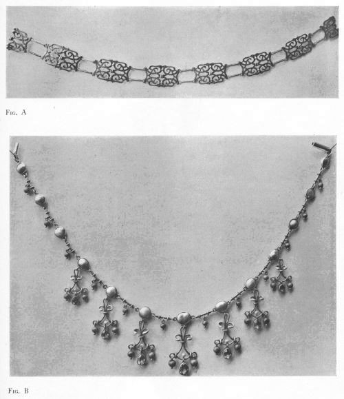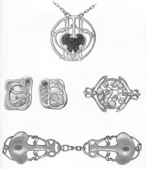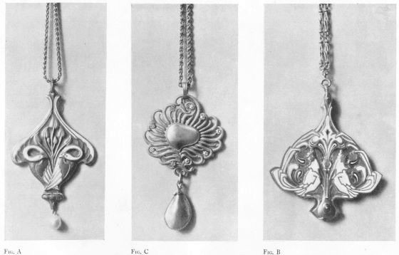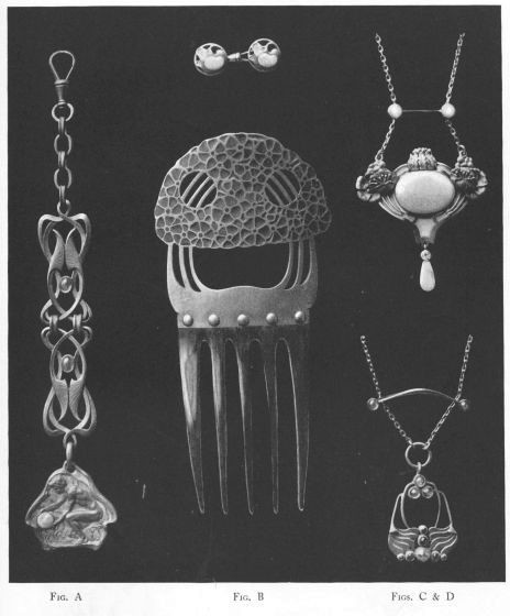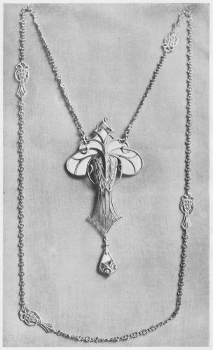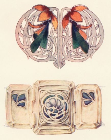 Be this as it may, the fructifying effects of these new ideas have, on the whole, been somewhat slow in making themselves felt within the craft of the gold and the silver-smith, or, rather, within that branch of it which embraces articles for personal adornment. Some countries have so far ignored them altogether; in others they are only just beginning to take root. In Denmark, for instance, which in other fields of applied art holds such an honourably prominent position, comparatively little attention has hitherto been given to jewellery by those distinguished artists who have for years brought their talent to bear upon other crafts. But, if I mistake not, a change is beginning to manifest itself in this respect, and I have very little doubt that the material for an article on modern Danish jewellery will be vastly augmented within a span of but a few years, although it is unfortunately a little scanty at the time of writing.