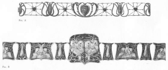 The decorator Van de Velde, who has left Brussels, and is now settled in Berlin, exhibited at some of the "Libre Esthétique" salons a series of jewels remarkable for their firm and consistent construction.
