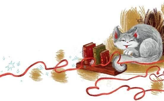 Тут Алиса намотала немножко шерсти Китти на шею – просто так, чтобы посмотреть, пойдет ли ей это; Китти стала вырываться – клубок скатился на пол и опять размотался.