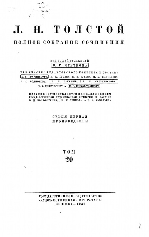 В издании сохраняется орфография и пунктуация печатной версии 90-томного собрания сочинений Л.Н. Толстого.