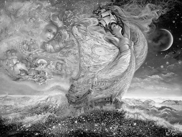 Вот, плывёт Фарго по морю. Ветер маленькую лодчонку раскачивает, вот-вот перевернёт. Из моря стоны да крики доносятся. Да, такие страшные! Такие жуткие, что кровь стынет! А, тут новый порыв ветра налетел на лодочку, закружил её, да и опрокинул Фарго в бездну страданий.