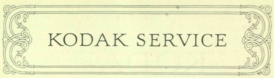 The editors of "Kodakery" aim first of all to make the little book a real help. At the same time it will be interesting and its delightful illustrations will show the beginner new possibilities in amateur photography. This little magazine is but a part of the Kodak Service. To sell a camera and then turn the customer adrift has never been a part of the Kodak plan. Along with our improvements in apparatus and materials, we have always endeavored also to improve the Kodak Service. "Kodakery" will, we believe, prove the means of keeping us more closely than ever in touch with our customers. In many ways it will be directly helpful—and it will always suggest the propriety of the customer's going to his Kodak dealer or to us, if there are little difficulties (there are no big ones, now) to be overcome.