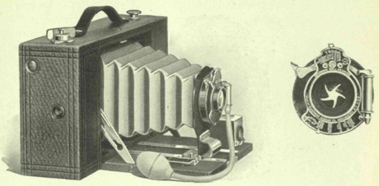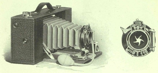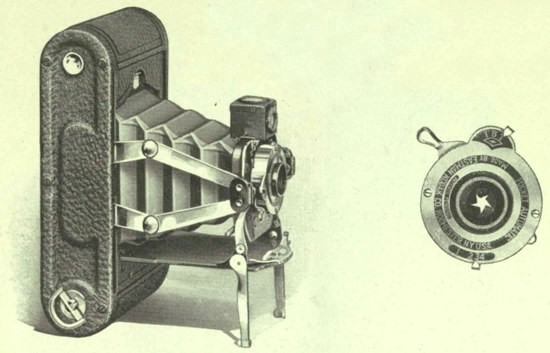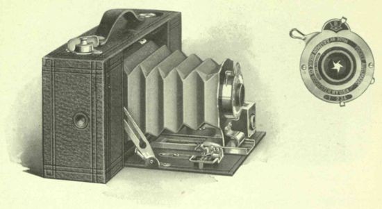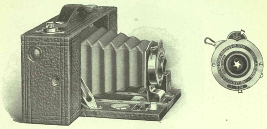 This shutter has star shaped opening and is automatic in action. It works with finger release for bulb, time and instantaneous exposures and is perfectly reliable in every respect. Fitted with iris diaphragm stops and regularly supplied with Nos. 1 and 1A Folding Pocket Kodaks, and Nos. 2 and 2A Folding Pocket Brownies.