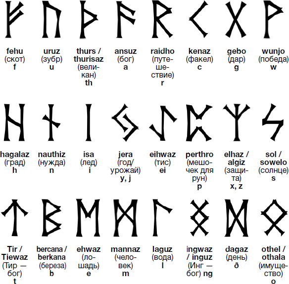 Защита и личная удача: Турс, Хагалаз, Альгиз, Наутиз, Иса, Беркана, Тюр, Эваз, Вуньо, Райдо, Ансуз, Гебо.