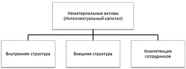 В качестве гуманитарных активов предлагается рассматривать всю совокупность коллективных знаний работников предприятия, их способностей к творчеству, решению проблем, лидерских качеств, а также предпринимательских и управленческих умений. Сущность инфраструктурных активов в обеспечении функционирования компании. В их состав входят бизнес-процессы, процессы управления, общая культура организации и др. Рыночными активами являются объекты, определяющие положение фирмы на рынке: благоприятные для компании соглашения, контакты, связи, дистрибутивные каналы и др. В состав рыночных активов также могут быть включены средства индивидуализации (товарные знаки, торговые марки, фирменные наименования). Таким образом, в группу «Активы интеллектуальной собственности» входят только результаты исследований и разработок (изобретения, полезные модели, промышленные образцы и ноу-хау).