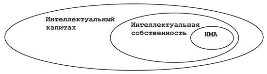 Рис. 1.5. Взаимосвязь категорий «интеллектуальный капитал», «интеллектуальная собственность», «нематериальные активы»