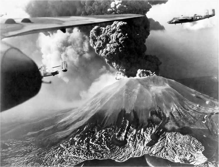 Самолеты в момент извержения вулкана находились на аэродроме близ Помпеев, где они базировались. Это непоправимое повреждение бомбардировщиков от стихии стало самой крупной небоевой потерей союзников во Второй мировой войне. — Прим. ред.