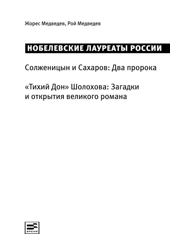 Очередной том Собрания сочинений Жореса и Роя Медведевых составили работы, объединенные принадлежностью их героев к числу нобелевских лауреатов России. В конце августа 1968-го — через несколько дней после оккупации Чехословакии войсками Варшавского пакта — А. И. Солженицын и А. Д. Сахаров решили соединить свои усилия для содержательного протеста, который могли бы поддержать наиболее известные представители интеллигенции. Так начиналось то общее, что было в судьбах этих столь разных людей: писателя и ученого, ставших весьма значимыми личностями в политике и идеологии.