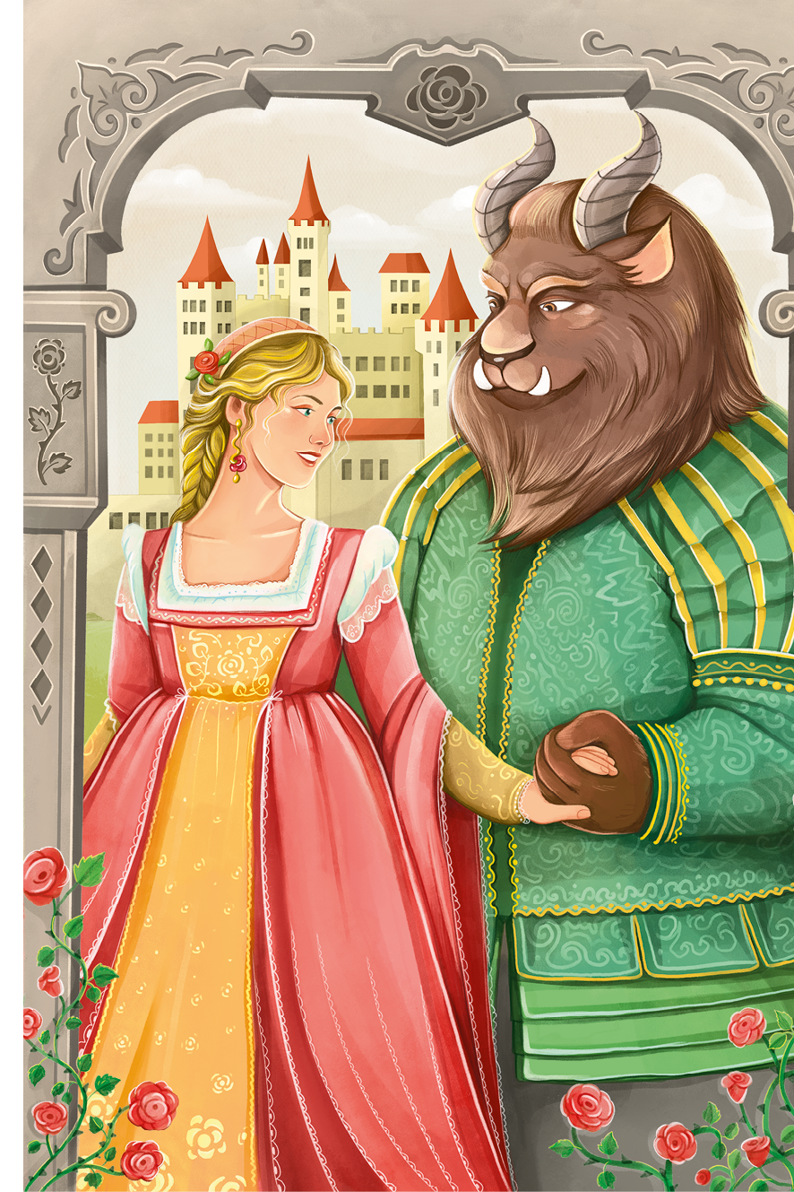 Олар орманның шетіне тоқтап, қош айтысты. Әкесі сол жерде қалды. Ал біздің сұлуымыз соқпақ жолға түсіп, раушан гүл өсіп тұрған алаңқайға беттеді. Келіп, айналаға көз жіберсе, қыбыр еткен тірі жан көрінбейді. Өзінің бір тал раушан гүлін қолына алды да: