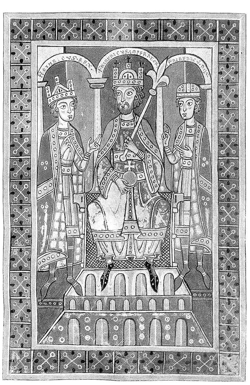Как известно, в 800 году король франков Карл Великий (742–814) отправился в Рим, чтобы прекратить распри между папой Львом III и местной знатью. 25 декабря, на Рождество, Карл слушал праздничную мессу в соборе Святого Петра. Вдруг папа приблизился к нему и возложил ему на голову императорскую корону. Все находившиеся в соборе франки и римляне дружно воскликнули: