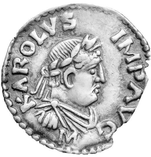 Монета Карла Великого, изображающая его в традиционной римской одежде. IX век