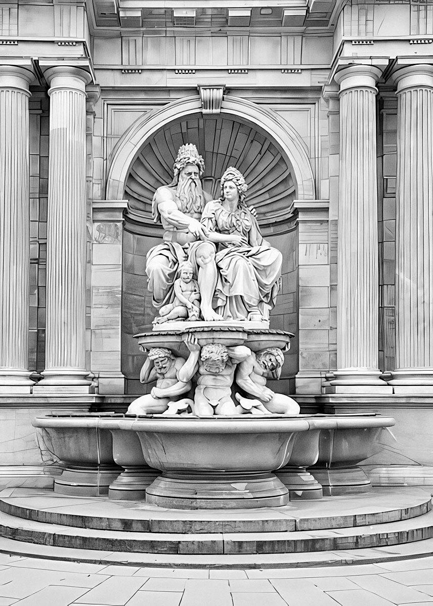 Альбрехтсбруннен в Вене, аллегория речного бога Данувия и города Виндобона