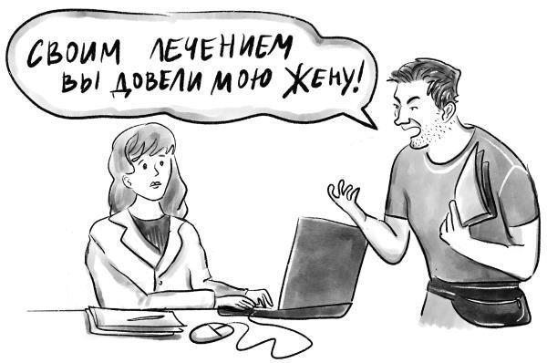 Погруженная в эти мысли, я шла по коридору отделения. Под дверями ординаторской меня ждал муж пациентки. Вид у него был крайне недовольный. Я бы даже сказала, боевой.