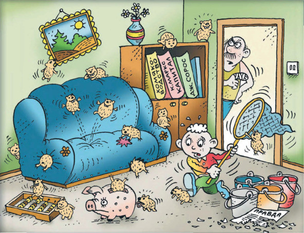 Дело было в солнечный выходной, родители на пару часиков удалились, и я, как и обещал, выпустил лохматых друзей в просторный вольер зала. Предварительно их пересчитал и перекрыл пути в другие загончики. Мое многочисленное и суперподвижное прожорливое стадо учуяло запах нетронутой древесины дивана и комода. Обитатели зоосада бросались и прыгали в стороны и вверх, как австралийские кролики, от переизбытка адреналина и внезапно захлестнувшей их долгожданной свободы. Перемахивая друг через друга, сестры и братья меньшие устремились к мечте — впились в диван, всосались в него, как семечки в пылесос. Они поверить не могли такому везению. Мною ж был уловлен пренеприятнейший звук нескольких десятков маленьких бензопил. И воображение прирожденного предпринимателя тут же, оперативно и во всех подробностях, нарисовало непредвиденные убытки, которые понесет наша экономная семья. Я начал выдергивать динозавриков из дивана, как вырывают колтуны из шерсти собаки, по ходу дела считая, скольких мелких вредителей удалось вернуть в радушное ведро. Забрасывал их туда, как блистательный баскетболист в кольцо мячи — без излишней нежности. Однако шустрые звероящеры успели-таки приложиться к глубинам диванных потрохов. Помня выразительную папину мимику в момент укуса, я старался не забывать его слов о том, что хомяки мои обделены любовью, потому и шалят. Лаской и хитростью пришлось выманивать прохиндеев из закромов дивана. В конце концов как-то удалось вернуть свору шельмецов-грызунов в родные пенаты. Правда, одного жигана я так и не досчитался, но решил, что ошибся в подсчетах питомцев перед прогулкой. А если и не напутал, то гладкошерстный со временем проголодается и как-то проявит себя. Несомненно…