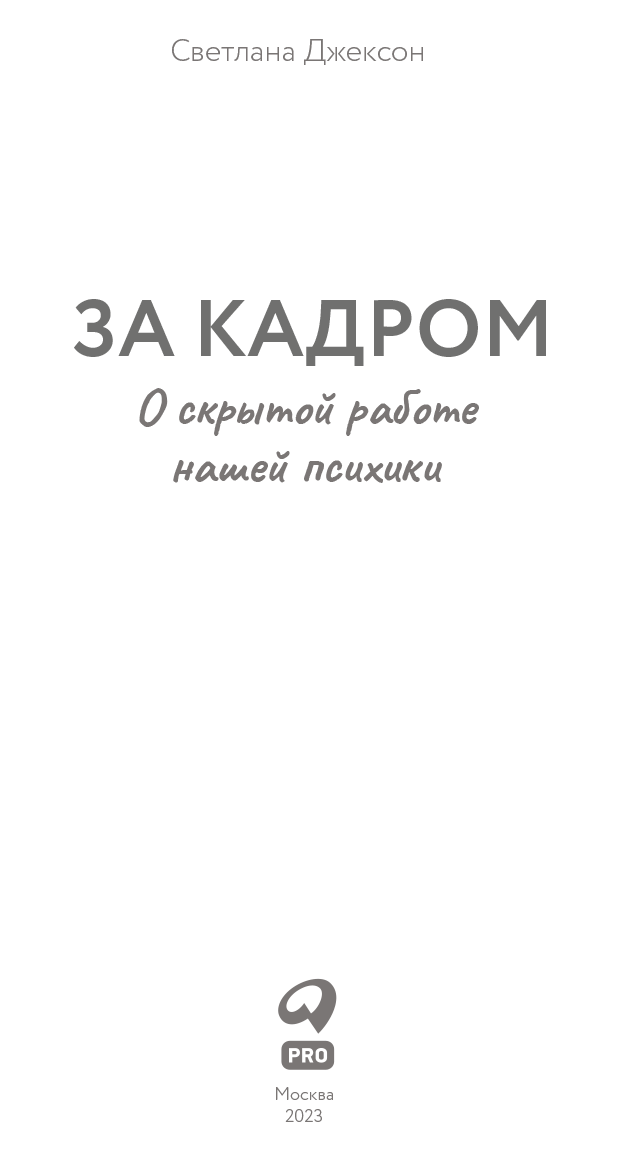 Если ваше душевное равновесие расшатано, а в отношениях с другими людьми больше вопросов, чем гармонии с безопасностью, но у вас пока не получается дойти до психолога — смело начинайте изучать книгу Светланы Джексон «За кадром». Именно изучать (я не ошиблась в термине). Это произведение не получится пролистнуть за один вечер. Наполнение книги погружает в глубинные механизмы работы человеческой психики, которые описаны доступным языком и приправлены юмором.