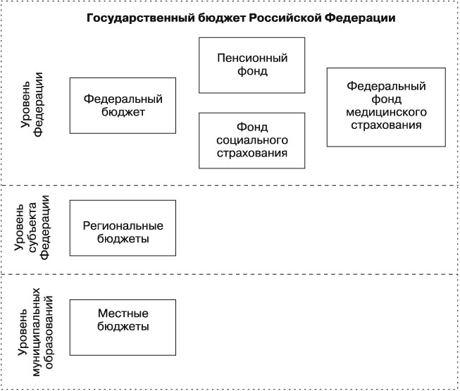 Соответственно территориальному устройству в бюджетную систему Российской Федерации входят бюджеты следующих уровней: