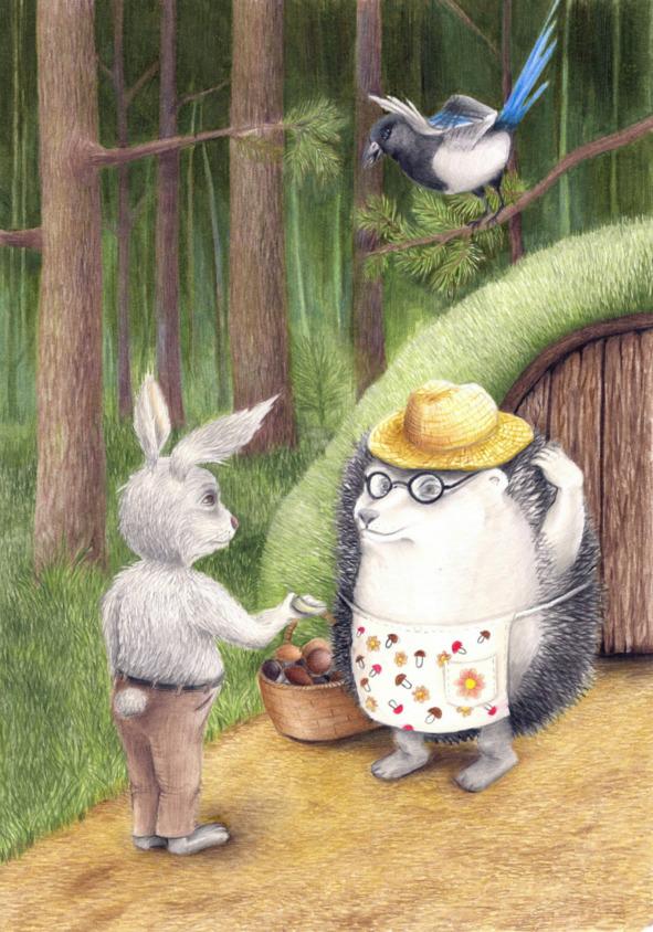 С трудом, переводя дыхание, Заяц рассказал Ежу о своей неожиданной находке. На удивление Ёж выслушал его внимательно. Долго водил носиком в разные стороны, а затем задумчиво изрёк: