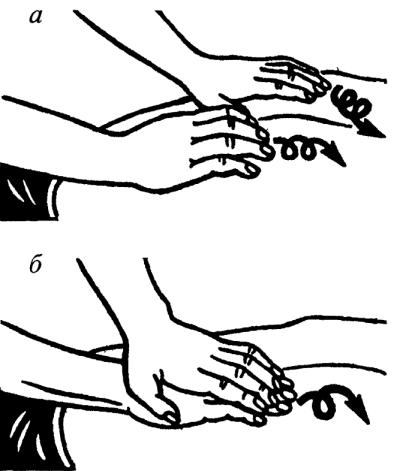 Рис. 17. Круговое растирание: а – двумя руками; б – с отягощением