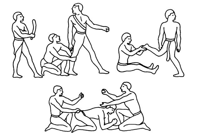 Рис. 1. Изображение приемов массажа на египетском папирусе