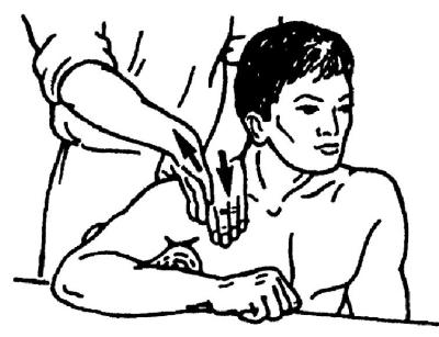 Рис. 23. Продольное разминание мышц плеча