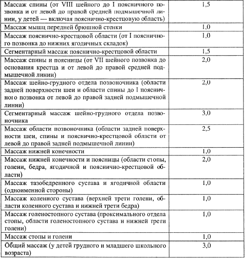 Основные рекомендации по массажу в различных областях тела представлены в табл. 2.