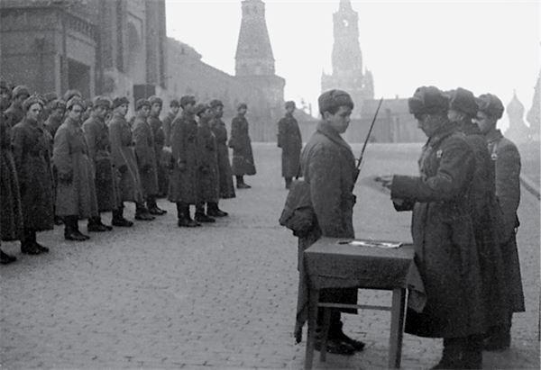 Бойцы принимают присягу на Красной площади. Июль 1941 г.