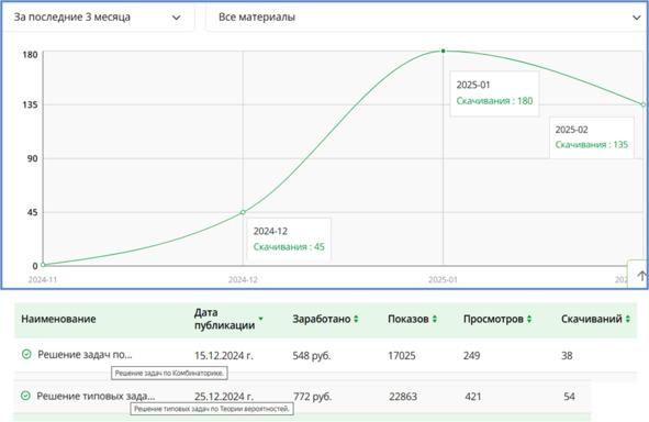 График и легенда «популярности» МР по Теории вероятностей на портале «Инфоурок»