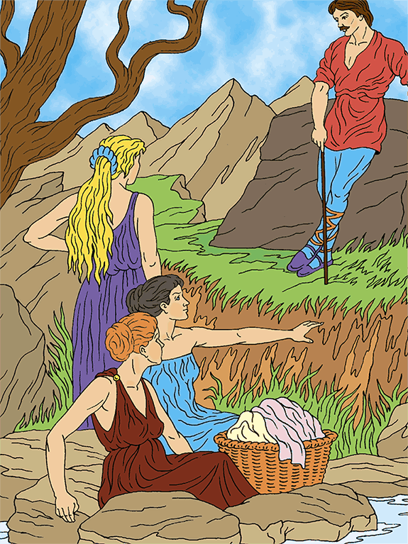За холмом Гуливар действительно увидел девушек, стирающих наряды. Они спросили у путника, не встречал ли он Западный Ветер, который должен высушить их платья.