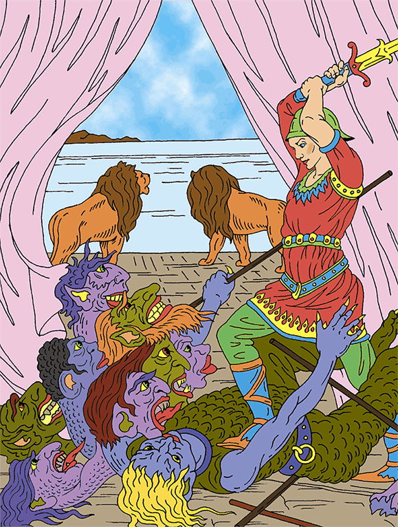 – Ты не ошибся! – воскликнул Гуливар и стал рубить головы троллю. Труднее всего оказалось справиться с последней, девятой головой, но Гуливар все же оказался сильнее.