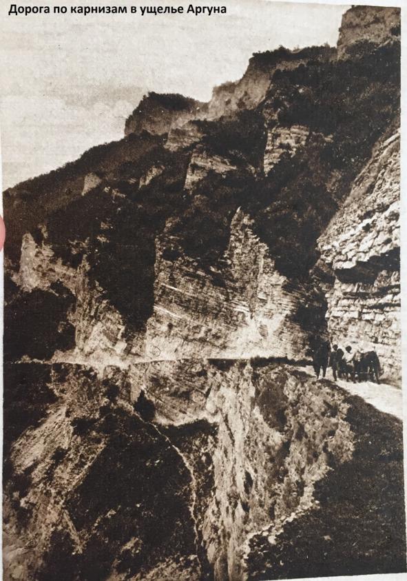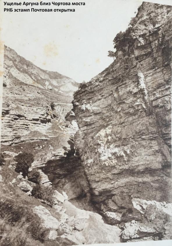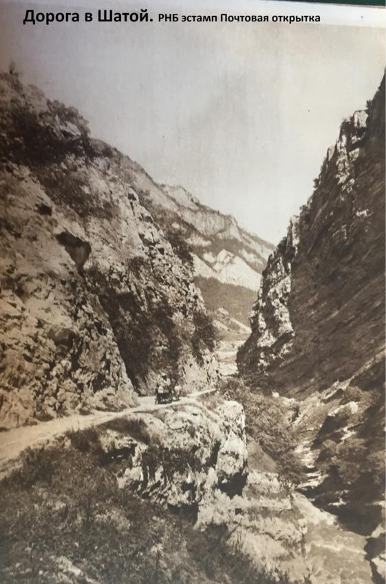 Под гнетущем впечатлением мыслей и рассказов об абреках въехали мы в Аргунском ущелье. С обеих сторон перед нами высились две зеленые гряды гор, отлого спускающиеся к долине, представляющей расширенное русло реки Аргуна. Далее эта долина становилась уже и уже, преображаясь мало-помалу в настоящее ущелье с стремительно несущейся на дне его рекой, сила течения которой уничтожает все препятствия и прокладывает пути через горы. В 9ти верстах от Воздвиженской, спустившись с горы, мы переехали большой Аргунский мост, а немного погодя, очутились около лесничества, при котором устроено одно из малоизвестных учебных заведений на Кавказе, именно Воздвиженская лесная школа, уютно расположенная около холодного родника. Затем, почти до самого Шатоя не расставались с берегом р. Аргуна, то крутым и скалистым, то отлогим и густо поросшим лесом, но всегда — очень высоким и спускающимся к реке грандиозной пропастью. Эти крутые скаты безопасно, но всегда очень жутко, в особенности под впечатлением рассказов о всяких трагических происшествиях, например, сорвавшихся в пропасть экипажах с пассажирами, обвалах и оползнях, нередко тоже- с человеческими жертвами.