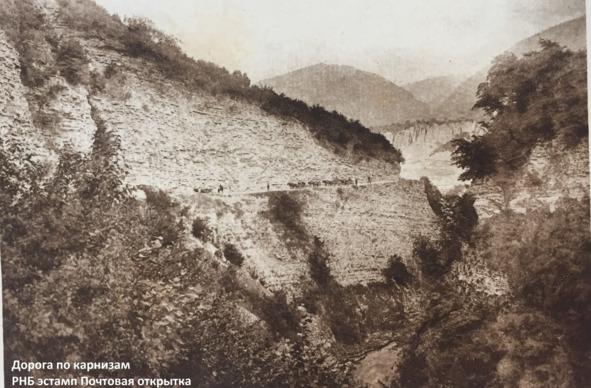 После осмотра этого интересного сооружения и обратного перехода по мосту в аул, к нам посыпались приглашения в гости — напиться чаю, посмотреть туземную пляску женщин и т. п. Все эти любезные приглашения пришлось отклонить, в виду надвигавшихся сумерек и затруднительности путешествовать по горным дорогам в ночное время. Своею совершенно бескорыстной любезностью, предупредительностью и приветливостью эти добродушные горцы произвели самое благоприятное впечатление. Но жутко было вспомнить, что история сношений с этим добрым народом запечатлена железом и кровью. Еще более жутко почувствовалось, когда я узнал, что в селе нет школ, что грамотных только — мулла, да еще 2—3 человека, и что культурная раса, подчинившая горные племена, не внесла ничего нового и совершенного в этот быт, укрепленный преданиями и сложившийся в безвестной глубине веков.
