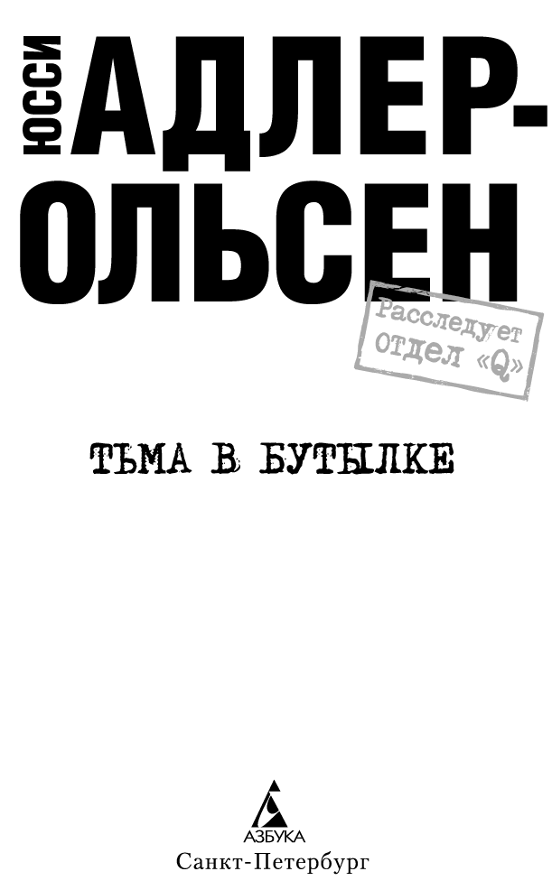 Тьма в бутылке : роман / Юсси Адлер-Ольсен ; пер. с дат. В. Жигановой. — СПб. : Азбука, Азбука-Аттикус, 2021. — (Звезды мирового детектива).