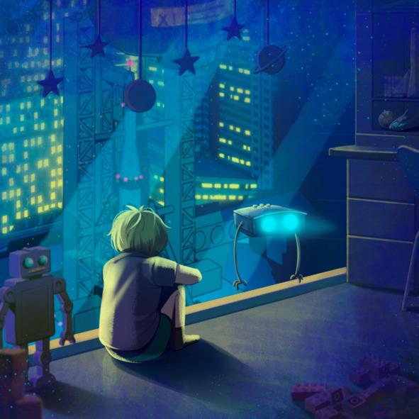 Мальчика звали Крис. Ему недавно исполнилось шесть лет, и он считал себя очень взрослым. А вот у его друга имени не было. Вернее, Крис никак не мог его запомнить, потому что это был длинный набор цифр и букв, который он получил на заводе. Поэтому Крис называл его просто — Роби.